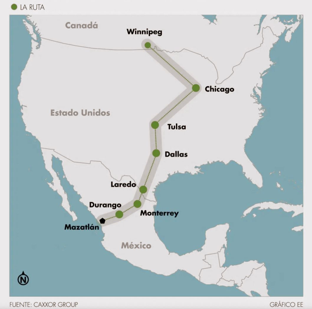 Con una inversión de 1,600 millones de dólares, el Corredor Logístico e Industrial T-MEC unirá a México con Estados Unidos y Canadá por vía ferroviaria y marítima. La ruta conectará un nuevo puerto ubicado en Sinaloa con el Centro Logístico en Winnipeg, pasando por Durango y Monterrey, y con posibles conexiones con Dallas, Tulsa y Chicago, entre otras ciudades.